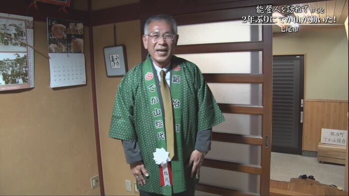 青柏祭の主役、でか山が動く少し前。曳手たちが、総代代行・桶成隆久さんの家で酒を酌み交わしていた。「これは髙木さんが還暦の時に作ったタオルで」鍜冶町の前総代・髙木純二さんは2025年1月、病に倒れ亡くなった。桶成さんは、総代の代行として髙木さんが着ていた半纏を身にまとい、祭りに参加する。「本当に身の引き締まる思いです」