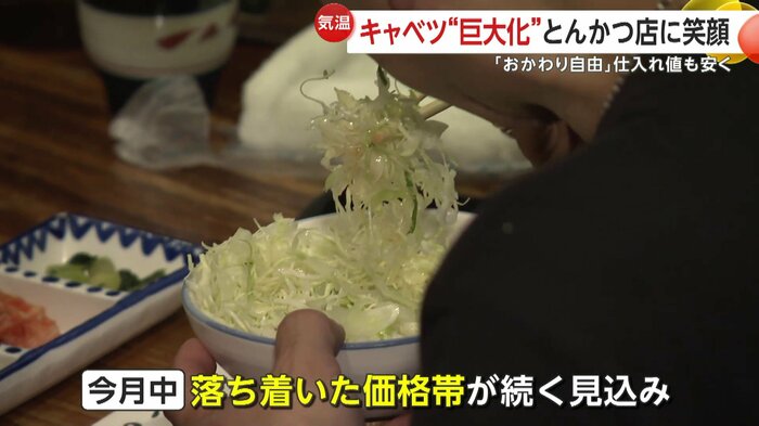 キャベツの“巨大化”の影響もあってか、ここでも、仕入れ価格が下がっていた。