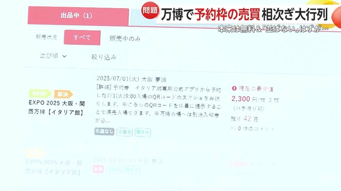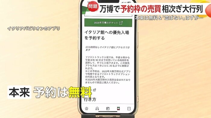 連日、多くの人が訪れている大阪・関西万博。人気の施設を余裕を持って楽しむには予約が必須だが、その予約枠の売買が相次ぎ問題となっている。