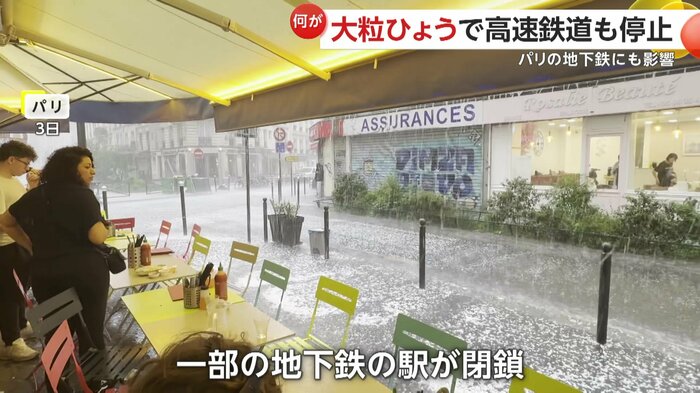パリでもひょうや雨の影響で3日、地下鉄の駅が一部閉鎖。フランス南東部では20日、川の氾濫で3人が死亡するなどしている。