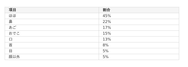 除去した部位として最も多かったのは「頬」で、全体の45%を占めました。
