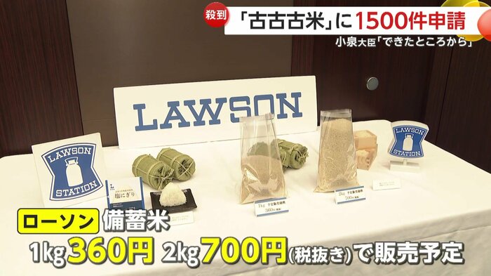 いわゆる古古古米に申請が集中する中、コンビニ大手「ローソン」は3日、備蓄米を税抜きで1キロ360円、2キロ700円で販売する予定だと発表。