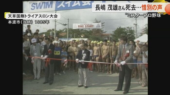 一方、日本トライアスロン連盟の初代会長という一面もあった長嶋さん。1985年を皮切りに、天草市で開催された大会にも訪れていた。