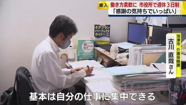 また、沼津市介護保険課給付係の大島順子 係長も「職員としてのモデルというかこういった(週休3日)勤務をすることで、より張り合いをもって仕事をしている。(周りの職員も)それを見習って自分も頑張ろうと働いていると思うので良い面が沢山ある」と週休3日制のメリットを挙げる。