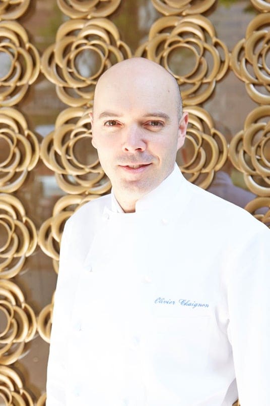 オリヴィエ・シェニョン (Olivier Chaignon)16歳から料理の道に入り、パリ、ロンドン、東京の星付きレストランで研鑽を積んだ後、2013年より銀座「ロオジエ」総料理長を務め、2018年からミシュラン三つ星を獲得し続けています。発酵ザクロや千寿オリーブオイル、ブータン王のウコンなど希少食材を使い、腸脳軸にアプローチする料理を提案しています。