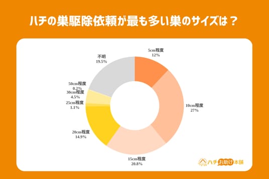 ハチの巣駆除依頼が最も多いサイズは?