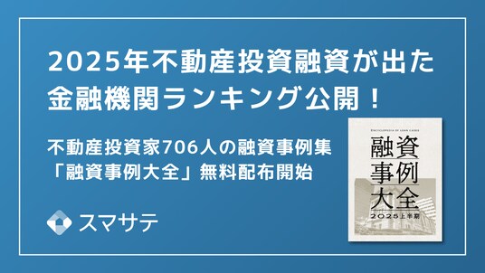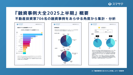 不動産会社向けAI賃料査定システム「スマサテ」および、不動産個人投資家向けAI家賃査定ツール「スマサテ for Owners」を提供するスマサテ株式会社(本社:東京都品川区、代表取締役社長:山岸 延好)は、不動産投資家706人の融資事例をまとめた資料「融資事例大全2025上半期」を個人不動産投資家と不動産会社向けに無料配布を開始しました。