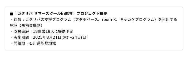 NPOカタリバ、経済的困難を抱える家庭に石川県能登地域で「サマースクール」を実施