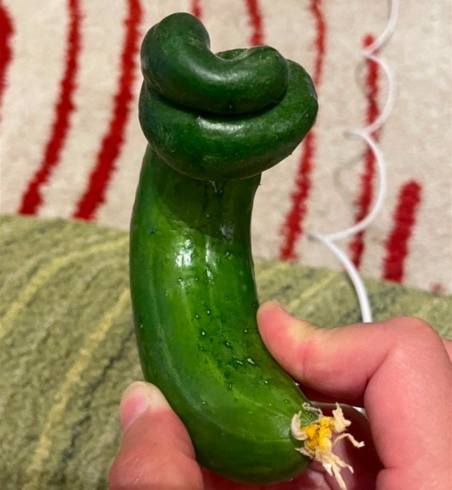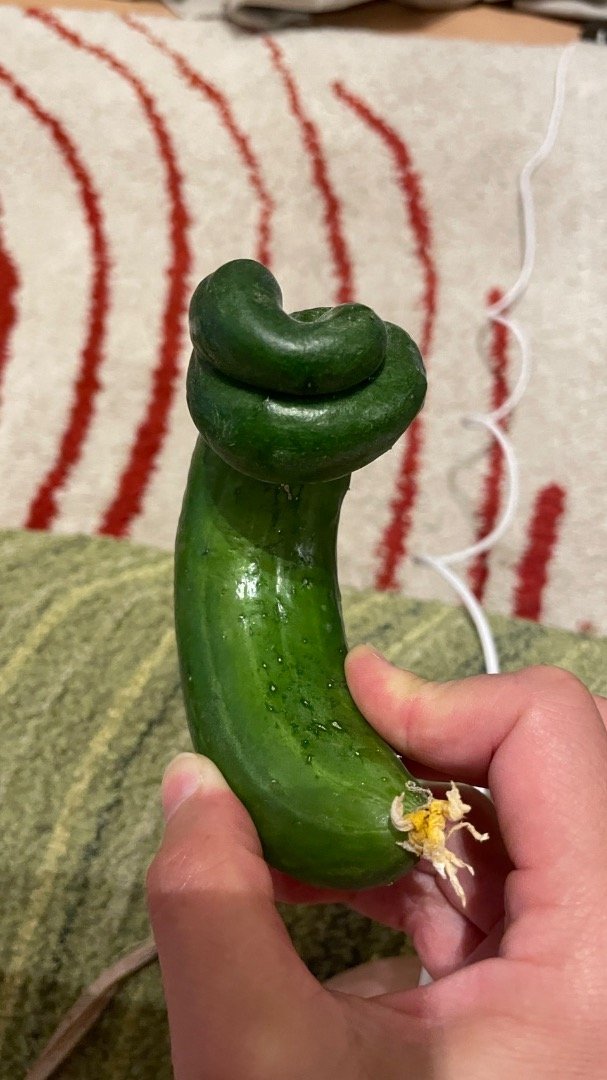 FNNビデオポストに投稿されたその写真には、家庭菜園の片隅で、どこか誇らしげに育った、巻き巻きキュウリの姿が写っていた。