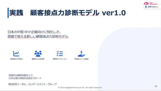 株式会社トータル・エンゲージメント・グループ(本社:東京都千代田区、代表取締役:池田順一、以下TEG)は、中堅・中小企業向けに開発した『顧客接点力診断ホワイトペーパー』を無料公開しました。
