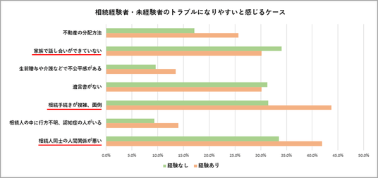 ・相続経験者では「手続きが煩雑・面倒」の割合が高く、手続きもトラブルの要因になると認識されていることが伺えます。