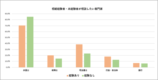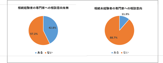 ・専門家への相談意向があるのは全体の約2割強にとどまりますが、相続経験者の約6割は相談意向があり、相続を経験したからこそ専門家の必要性を強く感じていると推測されます。