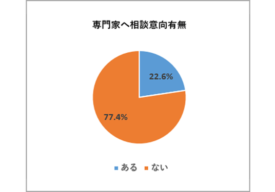 ・一方、未経験者の約8割が「不安はない」と回答し、専門家への相談意向があるのは約11%にとどまりました。
