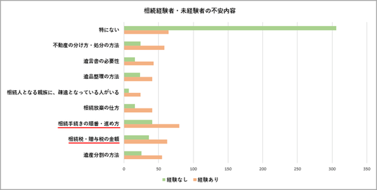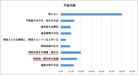 ・不安の上位は「手続きの進め方」「相続税・贈与税の金額」「遺産分割の方法」でした。