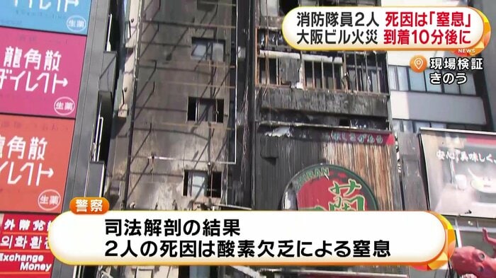 大阪・ミナミのビル火災で死亡した消防隊員2人の死因が、酸素欠乏による「窒息」だったことがわかった。