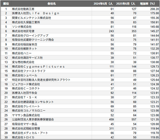 株式会社SalesNow(本社:東京都渋谷区、代表取締役:村岡功規、以下「当社」)は、国内540万社の企業情報を完全網羅した日本最大級のデータベース「SalesNow DB」より、人口の多い上位30都市を対象とした「従業員数増加率ランキング」を発表しました。本リリースでは、各都市別のデータをもとに、今回は「練馬区に本社を置く企業」を対象に、従業員数の増加傾向にフォーカスします。