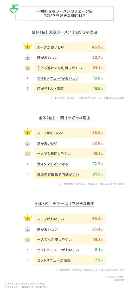 【一番好きなラーメンのチェーン店TOP3を好きな理由】