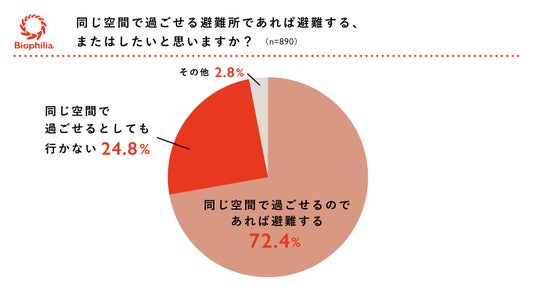 ・一方で、同じ空間で過ごせる避難所であれば避難する人は72.4%。