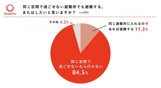 ・「ペットと同じ空間で過ごせない避難所には行かない」と回答した人は84.5%。