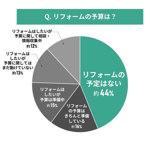 - リフォームはしたいが、予算に関してはまだ動けていない:約13%