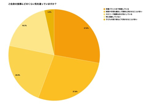 今回、未就学~小学生のお子さんを持つママ500人を対象に行った調査では、実に69.6%が「自分の食事は家族より優先度が低い」と感じていることが明らかになりました。
