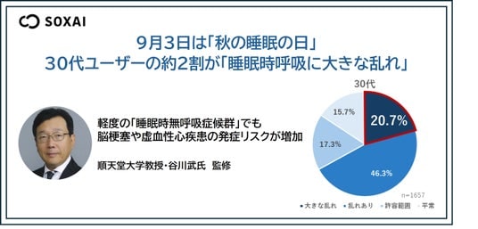 30代ユーザーの約2割が「睡眠時呼吸に大きな乱れ」軽度の「睡眠時無呼吸症候群」でも脳梗塞や虚血性心疾患の発症リスクが増加 順天堂大学教授・谷川武氏監修