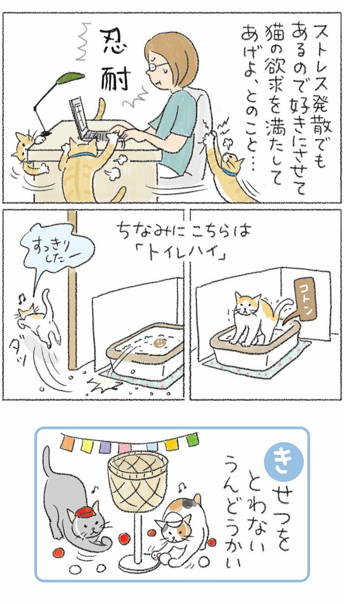 【漫画】なんでそんなに猫しぐさ 【猫あるある漫画】なんでそんなに猫しぐさ 第8回「突然の激走!!猫の“真空行動”が激しい」 杉崎アチャ 2025年9月8日 月曜 午前6:00 【漫画】なんでそんなに猫しぐさ #1 … #6 #7 #8 #9 #10 理由はストレス発散? 杉崎アチャ イラストレーター。静岡県生まれ跡見学園短期大学生活芸術科卒。書籍編集者を経てイラストレーターに。雑誌・書籍・広告・ウェブサイトのイラストレーション、マンガ等を制作。珈琲と猫とロックが大好き。小5のときに塾帰りに子猫を拾い連れ帰ったのをきっかけに、以後迷い猫や軒下出産親子、知人から譲り受けるなどでおそらくのべ20匹前後を飼ってきた愛猫家。現在は実家に耳が遠くて声が大きい20歳の老猫が1匹。猫の好きな部位は後頭部。主な仕事に、住宅情報サイトSUUMOで「スーモのマンガ」(リクルートSUUMO)連載中。月刊誌「大人のおしゃれ手帖」(宝島社)で猫マンガ『ねころびもひとしお』連載中。東京新聞ウェブサイトの連載「ぐるり東京街さんぽ」(東京新聞)イラストマップ制作など。 1 2 3 4 【漫画】なんでそんなに猫しぐさ #1 … #6 #7 #8 #9 #10 【漫画】なんでそんなに猫しぐさの他の記事 【猫あるある漫画】なんでそんなに猫しぐさ 第10回「猫の体の“袋”を知ってる? マニアックな部位の名前」 ライフ 2025年10月6日 【猫あるある漫画】なんでそんなに猫しぐさ 第9回「軽やかに主をあざむく 猫のするする詐欺」 ライフ 2025年9月22日 【猫あるある漫画】なんでそんなに猫しぐさ 第7回「なぜそこに…?猫の居場所はときどき不思議」 ライフ 2025年8月25日 【猫あるある漫画】なんでそんなに猫しぐさ 第6回「縦横にスライド やんのかステップ」 ライフ 2025年8月11日 一覧ページへ