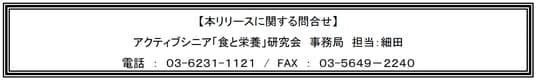 プレスリリース配信元:アクティブシニア「食と栄養」研究会事務局