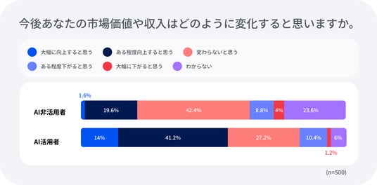 ■AI活用者ほど市場価値や収入に自信。AIは「仕事を奪う」から「仕事を創る」存在へ