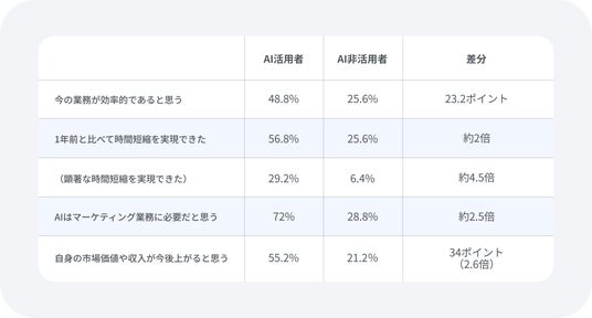調査対象:日本国内のマーケティング業務従事者500名(AI活用者250名、非活用者250名)