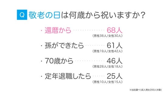 今回のアンケートでは、敬老の日を何歳から祝うかについて調査しました。