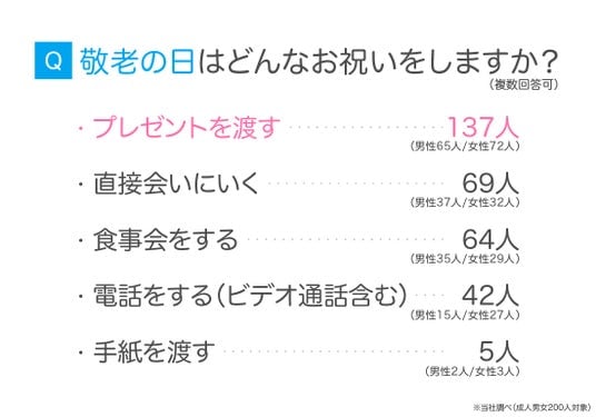 敬老の日に最も多くの人が実践しているお祝いは、「プレゼントを渡す」でした。