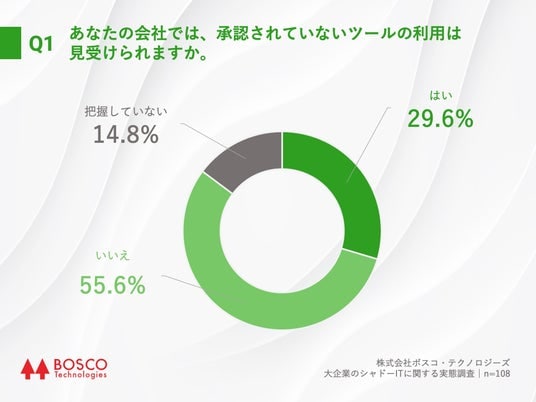 株式会社ボスコ・テクノロジーズ(本社:東京都港区、代表取締役:林 經正)は、大企業(従業員数1,000名以上)の情報システム担当者108名を対象に、大企業のシャドーITに関する実態調査を実施しましたので、お知らせいたします。