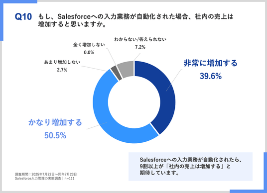 Salesforceへの入力業務が自動化されたら、9割以上が「社内の売上は増加する」と期待