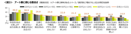 60代は、この上位2項目が特に高く、芸術性や希少性での面白さを感じている。<図3>