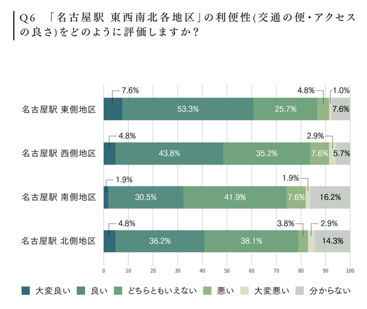 「名古屋駅 東西南北各地区」の利便性(交通の便・アクセスの良さ)をどのように評価しますか?