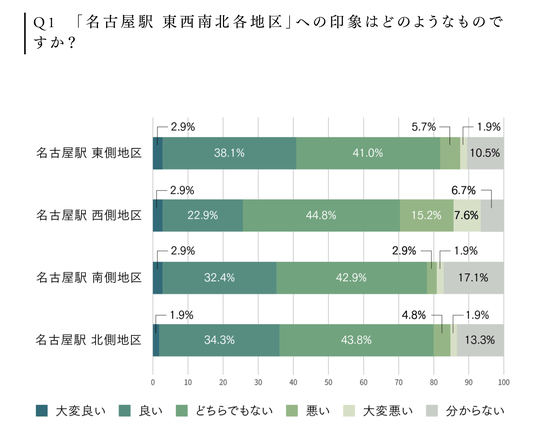 東は安定の高評価、西はイメージ改善、南北は知名度向上 トガル株式会社が名古屋駅東西南北4地区別にイメージ変化を調査<定点調査>