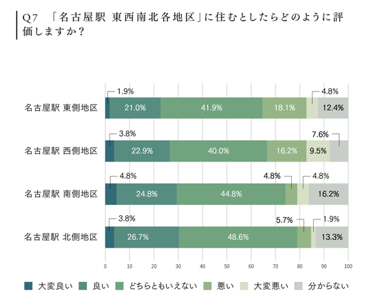 「名古屋駅 東西南北各地区」に住むとしたらどのように評価しますか?