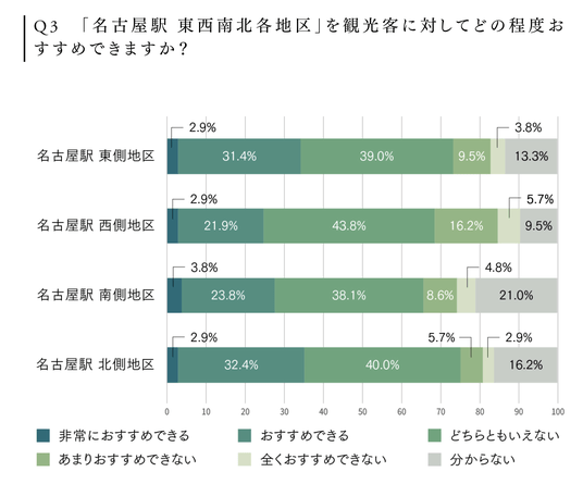 「名古屋駅 東西南北各地区」を観光客に対してどの程度おすすめできますか?