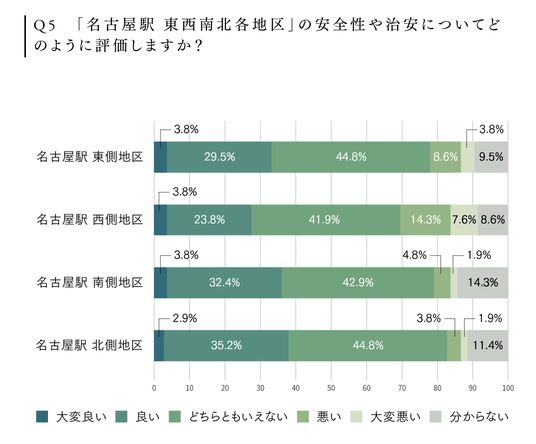 「名古屋駅 東西南北各地区」の安全性や治安についてどのように評価しますか?