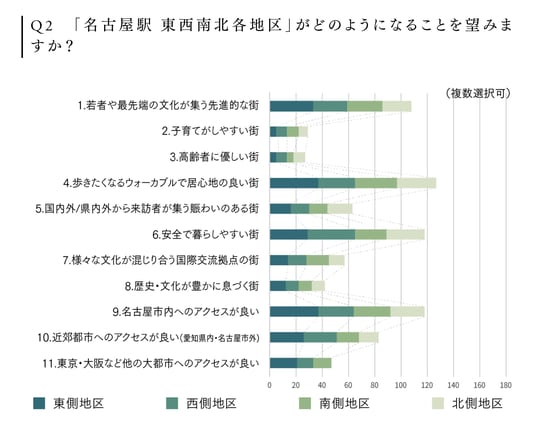 「名古屋駅 東西南北各地区」がどのようになることを望みますか?