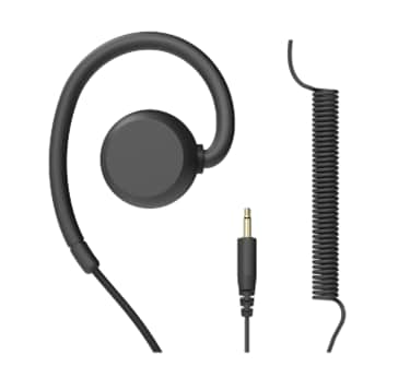 2.5mmプラグを搭載した、片耳タイプのオープンイヤー型イヤホンで、右耳用・左耳用の両モデルを展開しており、さまざまな現場のニーズに応える製品です。市販の多くの受信機やマイク付きデバイスの2.5mmジャックに対応しています。