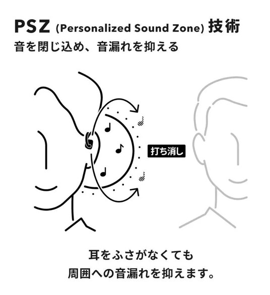 ・NTT独自の「PSZ」技術搭載で音漏れを抑える。