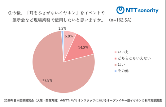 また、「今後、耳をふさがないイヤホンをイベントや展示会など現場業務で使用したいか?」という質問に対し、77.8%が「はい」と回答。