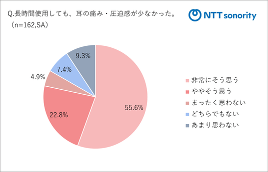 - 78.4%が「長時間使用しても耳の痛み・圧迫感が少なかった」と回答。