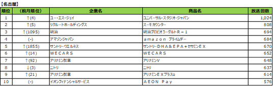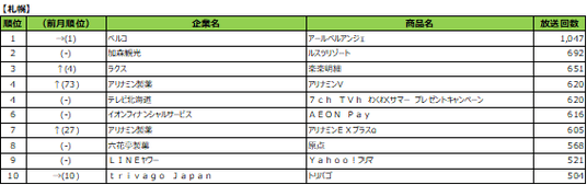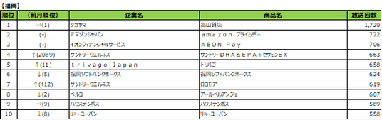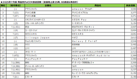 ■2025年7月度 商品別テレビCM放送回数ランキング