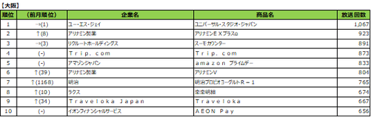 アマゾンジャパンは「amazon プライムデー」に加え、「Amazonオーディオブック:Audible」(14位)や「amazon(サービス)」(18位)が上位に入り、夏の暑さに合わた複数商品で接触面を拡張。ヘルスケアは「アリナミン」二商品に加え「明治プロビオヨーグルトR-1」(6位)が急伸し、夏本番に向けた体調管理需要を強く反映した月となりました。ユー・エス・ジェイの「ユニバーサル・スタジオ・ジャパン」やTrip.com「Trip.com」などのテーマパークや旅行系の露出も並び、行楽・レジャーの購買動機喚起に寄与しています。
