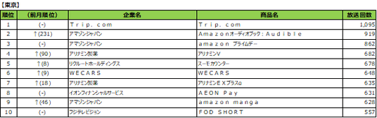 2025年7月のテレビCM放送回数ランキングは、1位に初登場のアマゾンジャパン「amazon プライムデー」、2位と3位はともにアリナミン製薬の「アリナミンEXプラスα」、「アリナミンV」という結果となりました。