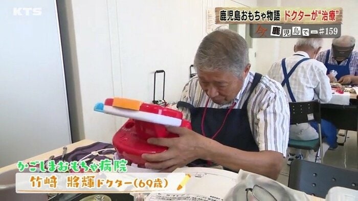 69歳の竹﨑さんは、元自衛官。「おもちゃは、基本的に思い入れのあるものが多いですからね。捨てられるというのは非常に悲しいことなんですが、それがおもちゃ病院に持ってくれば直ると」。自信を持ってこう語る竹﨑さん。おもちゃドクター歴15年のベテランだ。