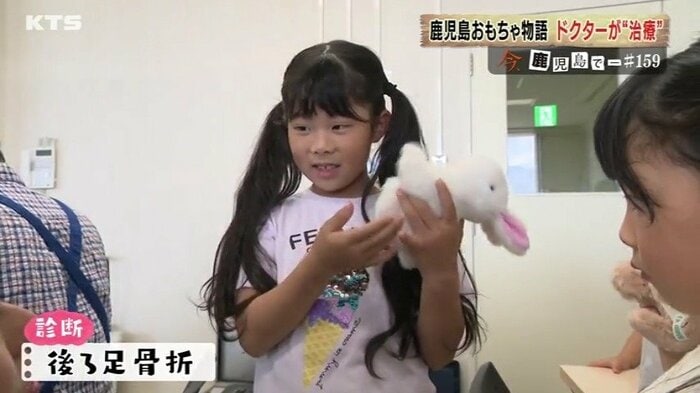 「動いた動いた動いた動いた…良かったね!」後ろ足を骨折していたウサギのおもちゃを持ってきた女の子は、「わぁ~」と治療を終えたウサギを両手で抱きかかえて大喜び。「お父さんが踏んだから骨折して、前は悲しかったけど直してもらってうれしかった」。笑顔がはじけた。